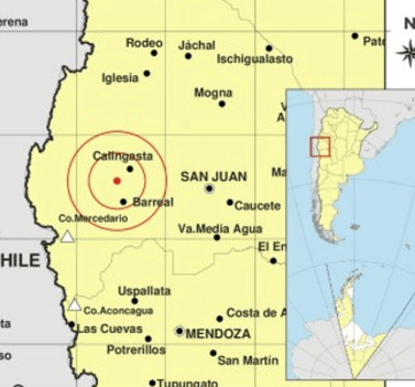 Según datos del Instituto Nacional de Prevención Sísmica (INPRES), el temblor ocurrió a las 3:10 y tuvo su epicentro a 18 kilómetros al suroeste de Calingasta y a 34 kilómetros al norte de Barreal, con una profundidad de 122 kilómetros.